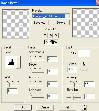 Klik på: Effects / 3D effects / Inner bevel og brug disse indstillinger: