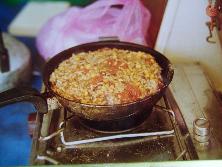 I eat rice and corn with lots of piri-piri and ketchup on top. They made a stew